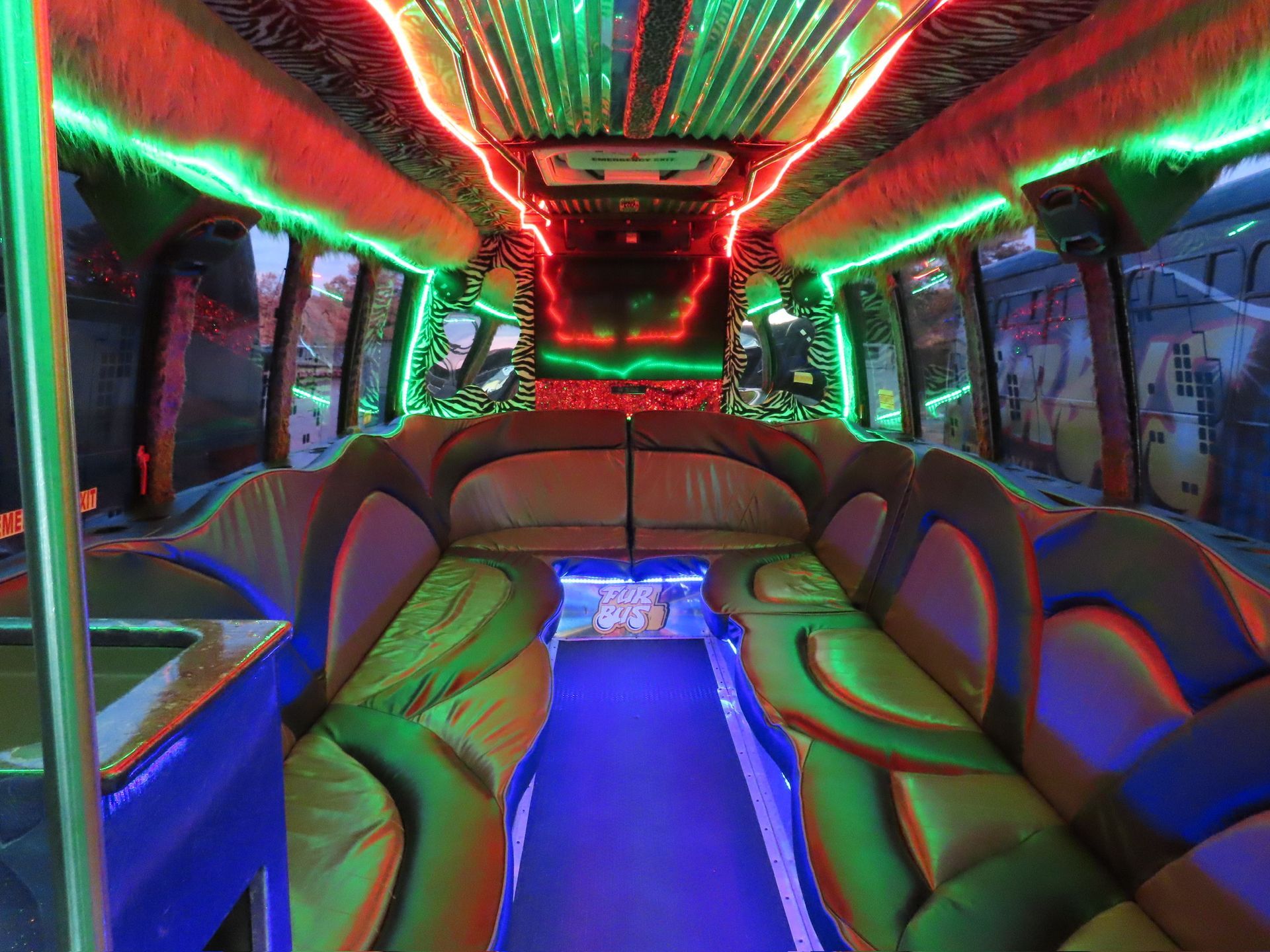 There is only one Fur Bus! Okay, there have actually been many Fur Buses over the years, but one thing remains on every vehicle — our uniquely designed interior lighting systems and decor is true to Fur Bus and Atlanta! This smaller option packs a punch with premium blue-tooth audio and lighting and features and easy-to-access bar area ideal for keeping you and up to fifteen friends refreshed between locations!